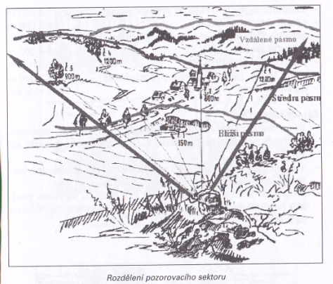 Pozorování se provádí ZPRAVA DOLEVA od BLIŽŠÍHO pásma ke VZDÁLENĚJŠÍMU, zvláštní pozornost se věnuje nepřehledným prostorům.