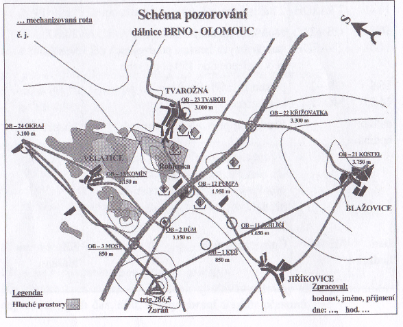 Pozorovací sektor: - vpravo vaše stanoviště - severní okraj osady Blažovice